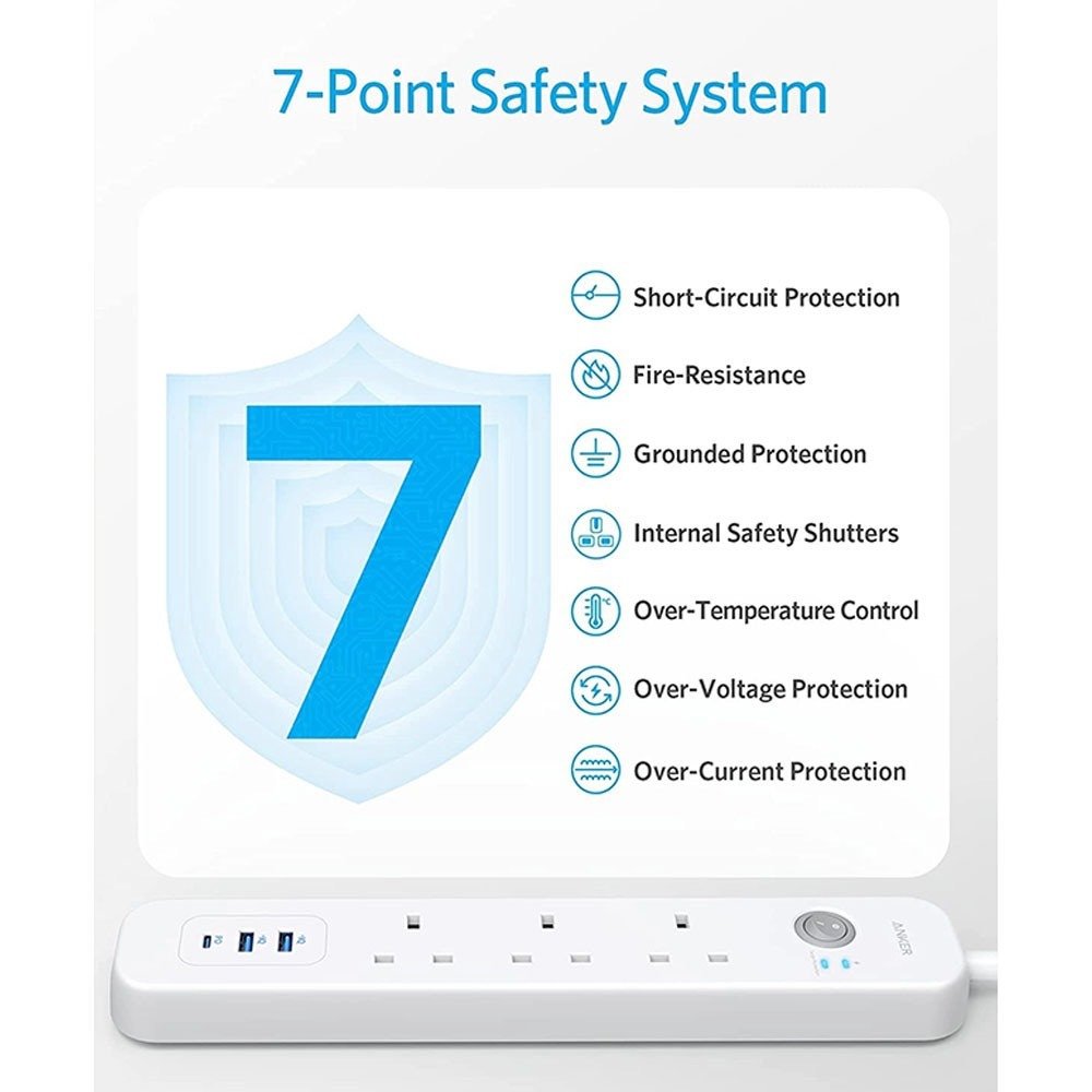 توصيلة انكر 3 منافذ طاقة ومنفذين USB ومنفذ PD بقوة 30 واط - ابيض
